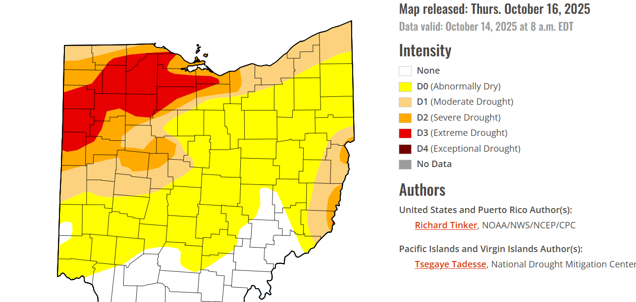 Extreme Drought conditions persist in Hancock County and across the region according to the latest map released by the U.S. Drought Monitor on Thursday, October 16.