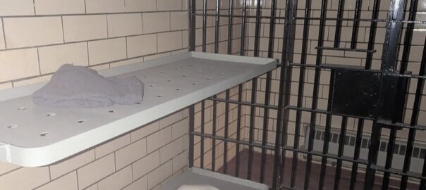 We received the bars/door, sink, toilet, wall-mounted desk, chairs, coat hanger/shelf, and a nice old chair from the jail complex – all on permanent loan.