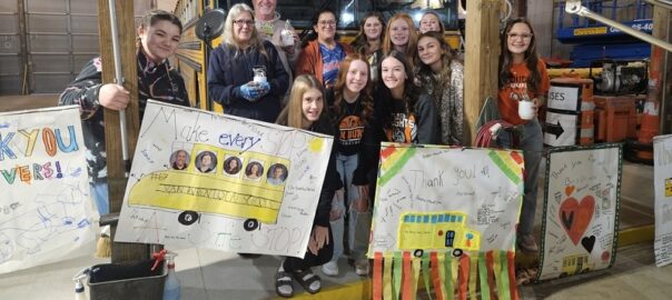 This morning, LEADS students presented gifts to the bus drivers and shared the posters middle school students had made to celebrate the important work our drivers do every day.