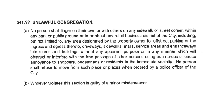 Law Director Rob Feighner says it has come to his attention, and that of the Mayor, of increased complaints regarding loitering in and around parts of downtown.