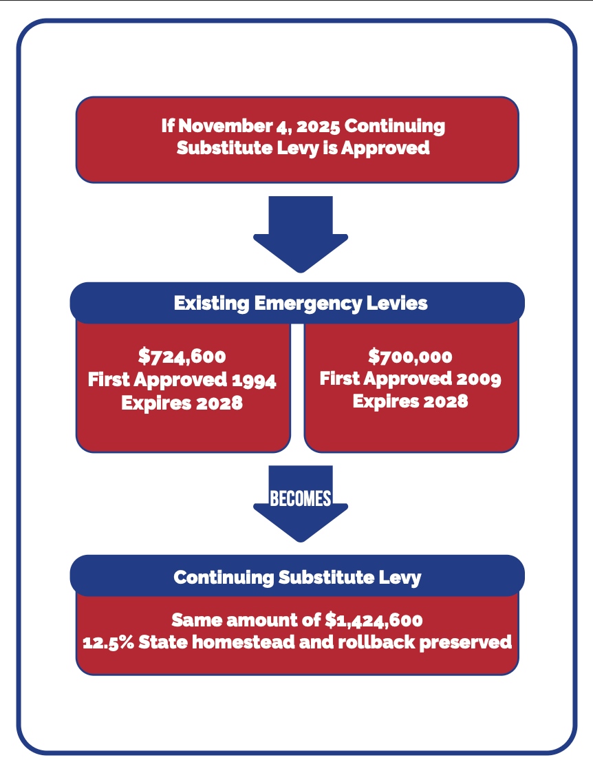 If approved, two existing emergency levies would become one continuing substitute levy.
