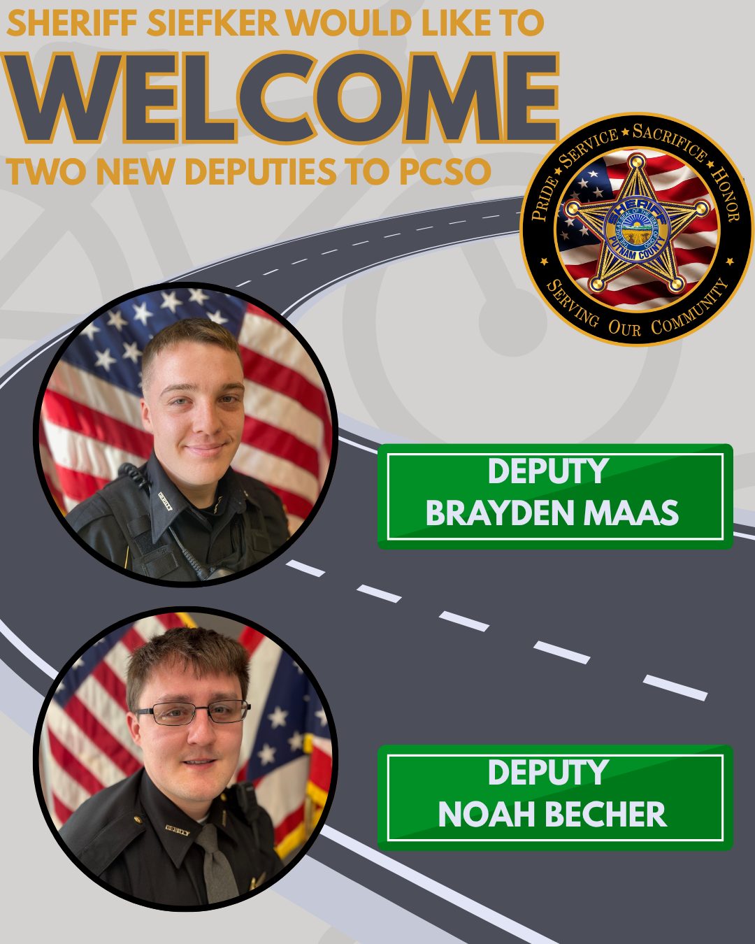 Sheriff Brian Siefker shared a post on Facebook welcoming Deputies Brayden Maas and Noah Becher to the sheriff’s office.