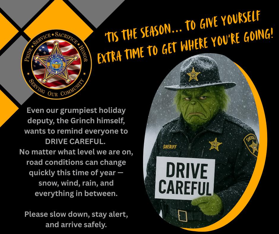 The sheriff’s office is asking everyone to slow down, stay alert, and arrive at your destination safely.