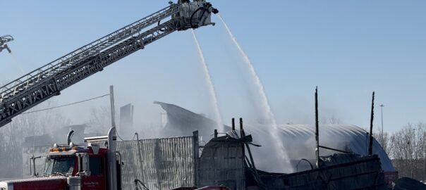When fire crews arrived on scene at 9:05 they went defensive immediately with the amount of fire from the structure, and the roof and sides of the building collapsed.